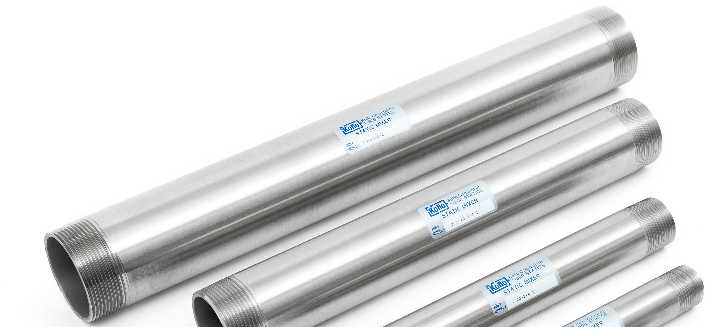 Static Mixers are highly-engineered motionless mixing devices that allow for the inline continuous blending of fluids within a pipeline. With no moving parts, static mixers utilize the energy of the flow stream to generate consistent, cost-effective, and reliable mixing. Koflo static mixers are available in-stock for direct purchase or custom designed to meet your specific mixer requirements. Meeting a range of flow rates for a variety of applications, Koflo static inline mixers are the reliable, durable, and efficient solution to your motionless, continuous mixing needs.